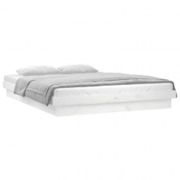 Valkoinen sängynrunko led-valoilla 200x200cm puu