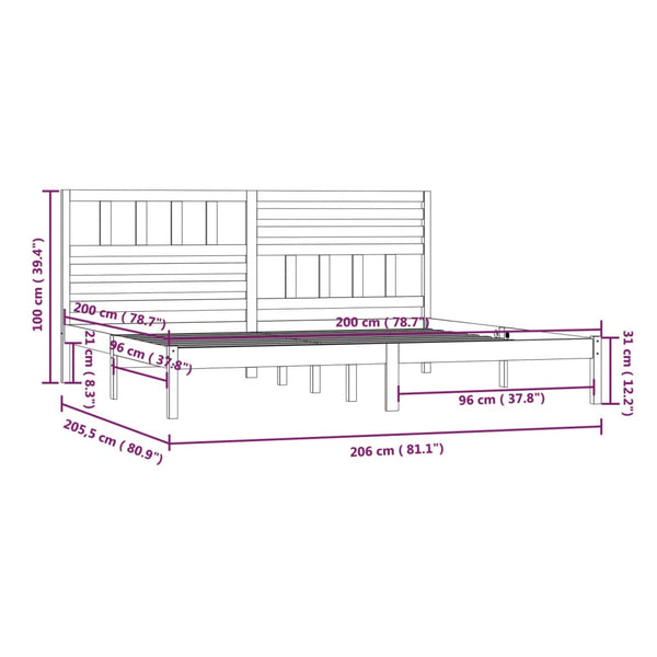- Sängyn rungon kokonaismitat: 205,5 x 206 x 100 cm (P x L x K)