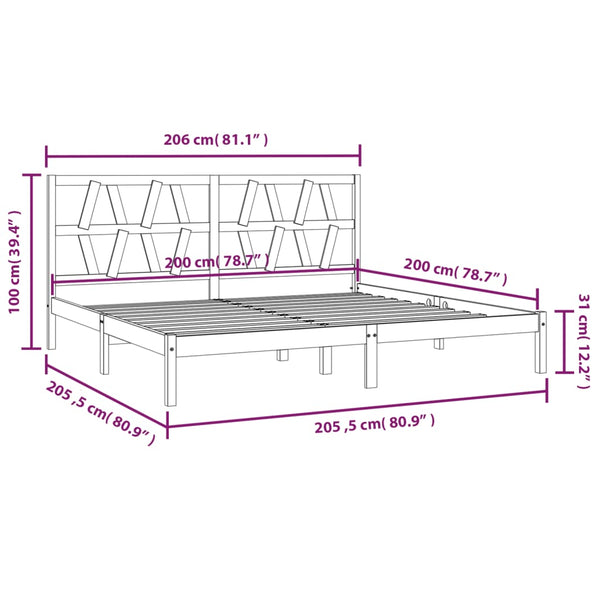 - Tämä sängynrunko sopii patjalle, jonka mitat ovat 200 x 200 cm.