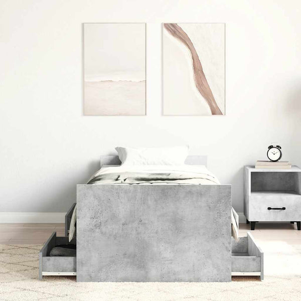 Betoninharmaa sängynrunko päädyillä 75x190cm