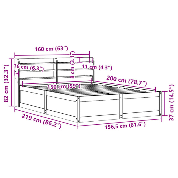 Sängynrunko päädyllä 150x200cm mänty
