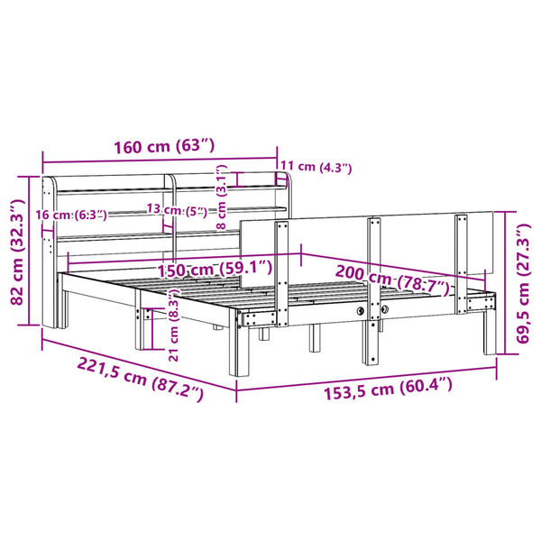 Sängynrunko päädyllä 150x200cm mänty