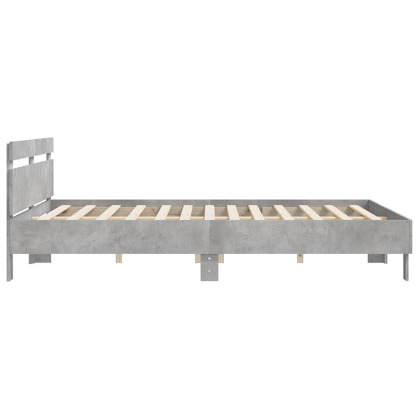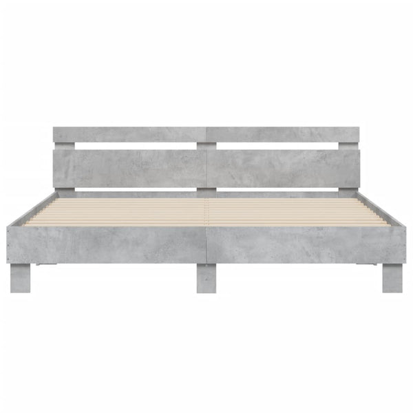 Betoninharmaa sängynrunko päädyllä 200x200cm puinen