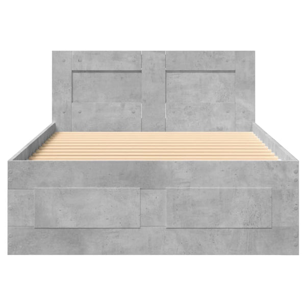 Betoninharmaa sängynrunko päädyllä 90x200cm puinen