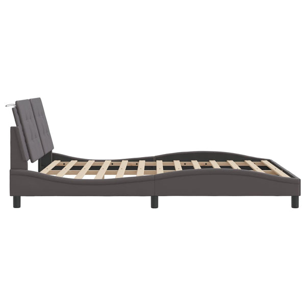 Harmaa sängynrunko päädyllä 160x200cm keinonahka