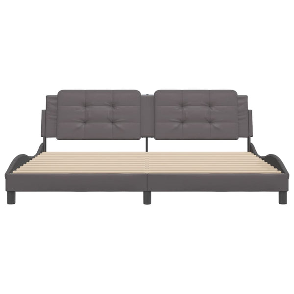 Harmaa sängynrunko päädyllä 200x200cm keinonahka
