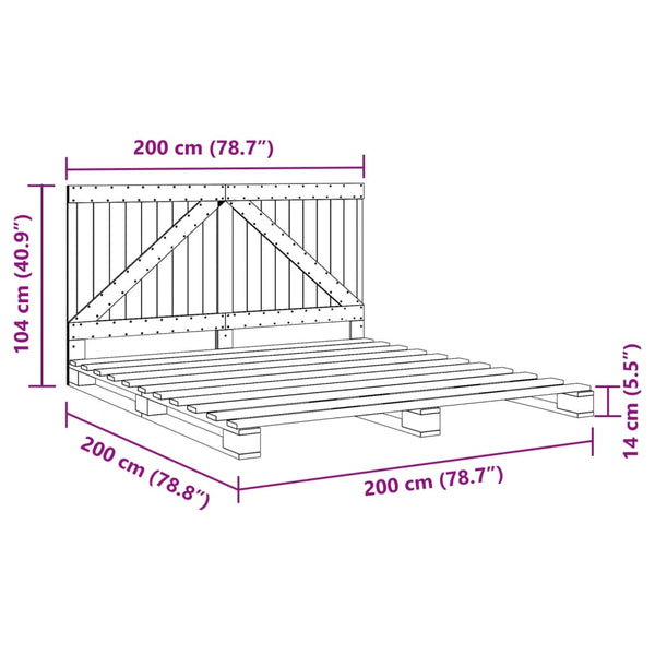 Harmaa sängynrunko päädyllä 200x200cm mänty