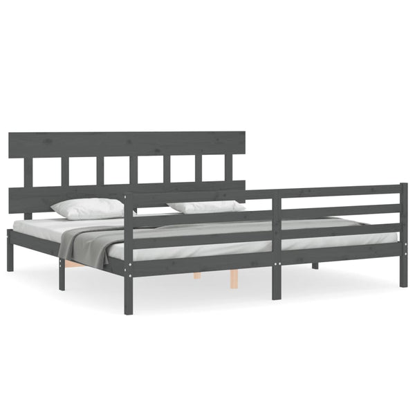 Harmaa sängynrunko päädyllä 200x200cm puu