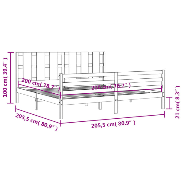 Harmaa sängynrunko päädyllä Didina 200x200cm (puu)
