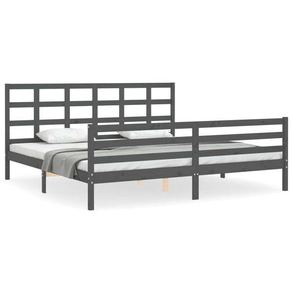 Harmaa sängynrunko päädyllä 200x200cm puu