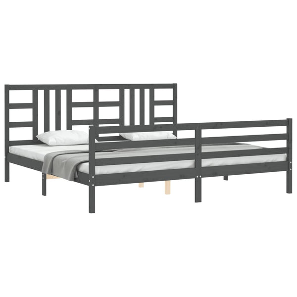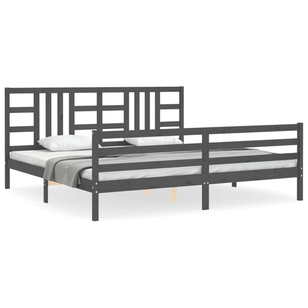 Harmaa sängynrunko päädyllä 200x200cm puu