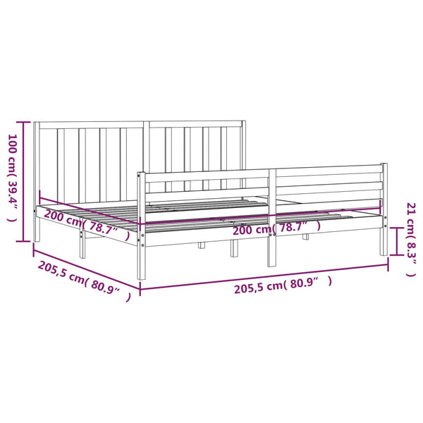 Harmaa sängynrunko päädyllä 200x200cm puu