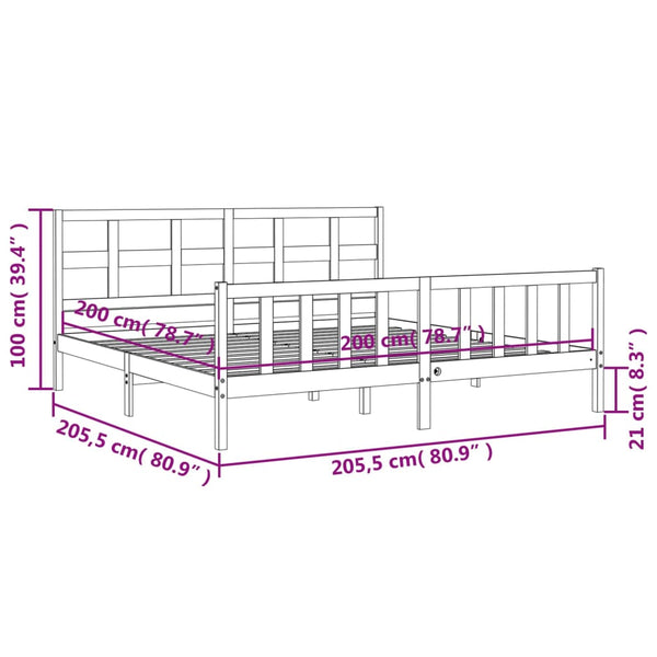Harmaa sängynrunko päädyllä 200x200cm puu
