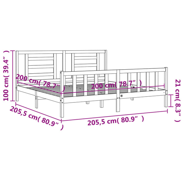 Harmaa sängynrunko päädyllä 200x200cm puu