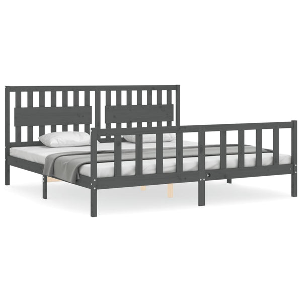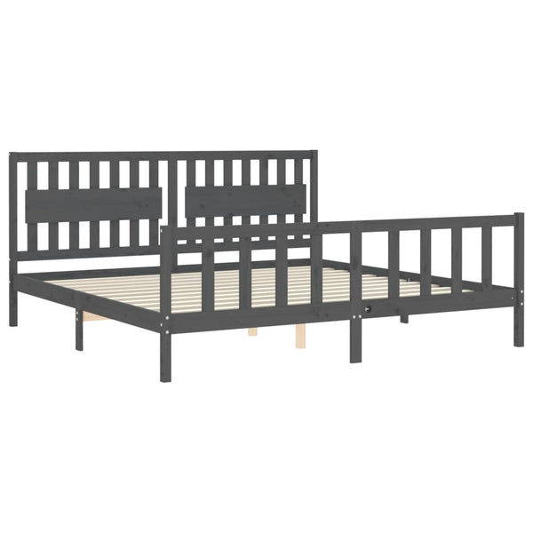 Harmaa sängynrunko päädyllä 200x200cm puu