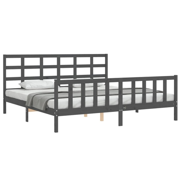 Harmaa sängynrunko päädyllä 200x200cm puu
