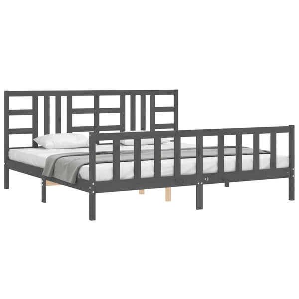 Harmaa sängynrunko päädyllä 200x200cm puu
