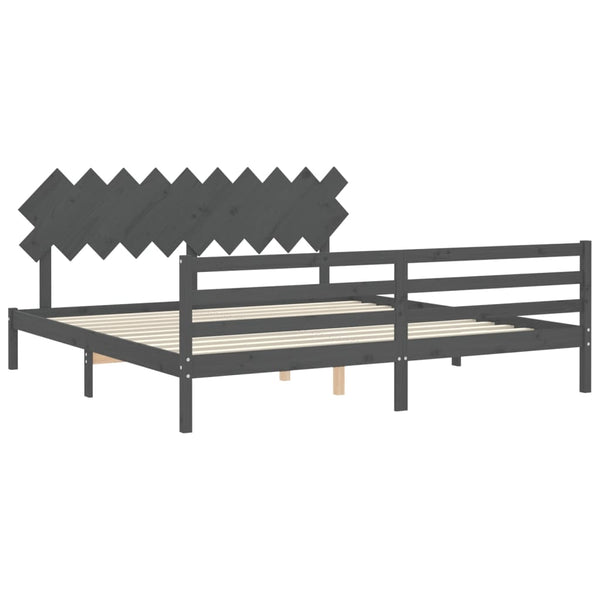 Harmaa sängynrunko päädyllä 200x200cm puu