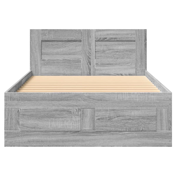 Harmaa sängynrunko päädyllä 75x190cm puinen