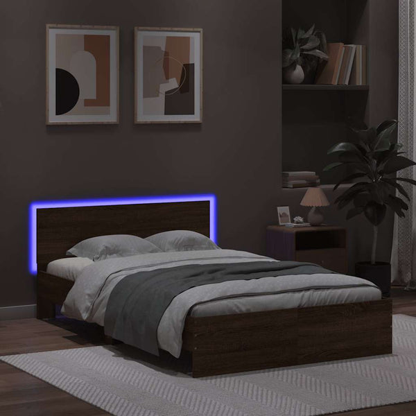 Ruskea tammi sängynrunko päädyllä ja led-valoilla 120x190cm
