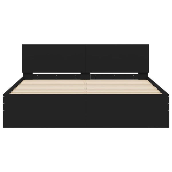 Musta sängynrunko päädyllä 140x190cm