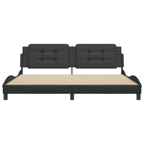 Musta sängynrunko päädyllä 200x200cm keinonahka