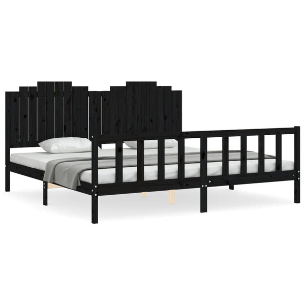 Musta sängynrunko päädyllä 200x200cm puu