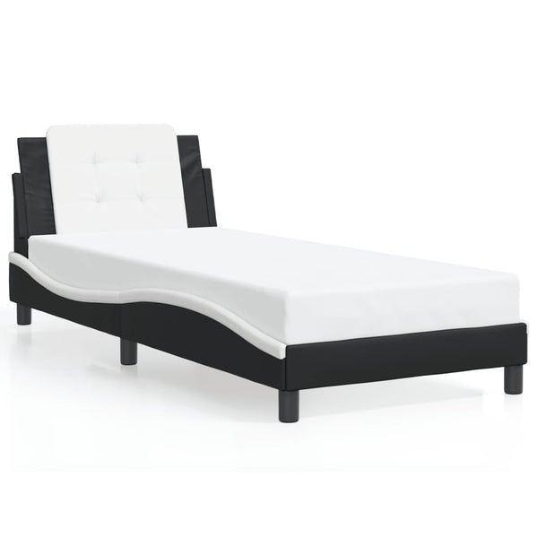 Musta ja valkoinen sängynrunko päädyllä 80x200cm keinonahka