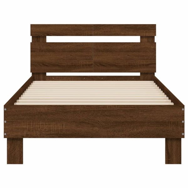 Ruskea tammi sängynrunko päädyllä 100x200cm puinen