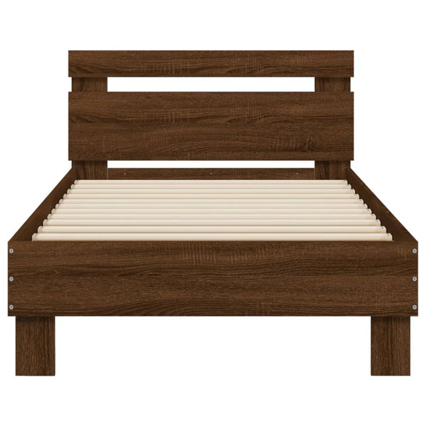 Ruskea tammi sängynrunko päädyllä 75x190cm puinen