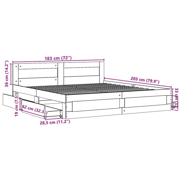 Sonoma-tammi sängynrunko päädyllä 180x200cm puinen