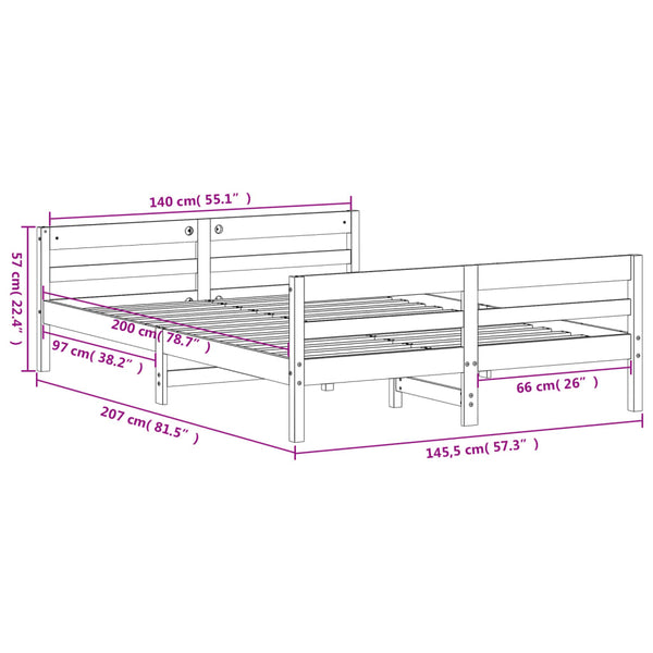 Vahanruskea sängynrunko päädyllä 140x200cm mänty