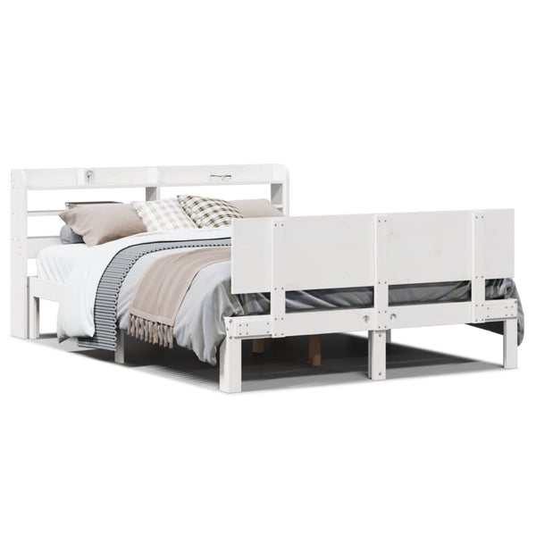 Valkoinen sängynrunko päädyllä 135x190cm mänty