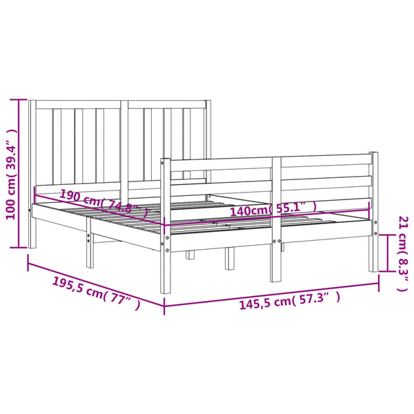 Valkoinen sängynrunko päädyllä 140x190cm puu