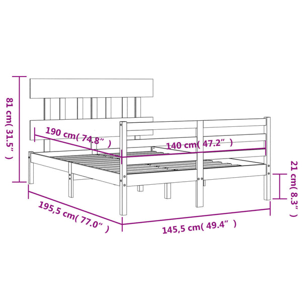 Valkoinen sängynrunko päädyllä 140x190cm puu
