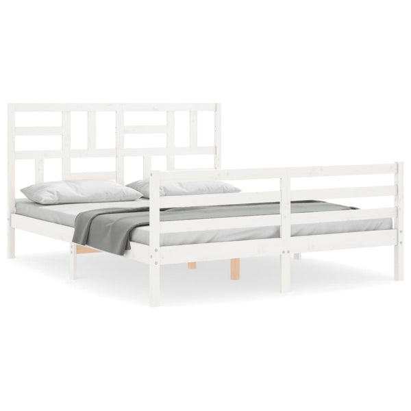 Valkoinen sängynrunko päädyllä 160x200cm mänty
