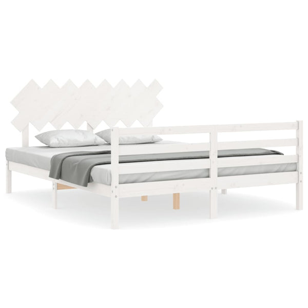 Valkoinen sängynrunko päädyllä 160x200cm mänty
