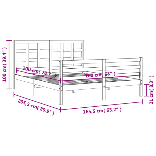 Valkoinen sängynrunko päädyllä Sabinca 160x200cm (mänty)