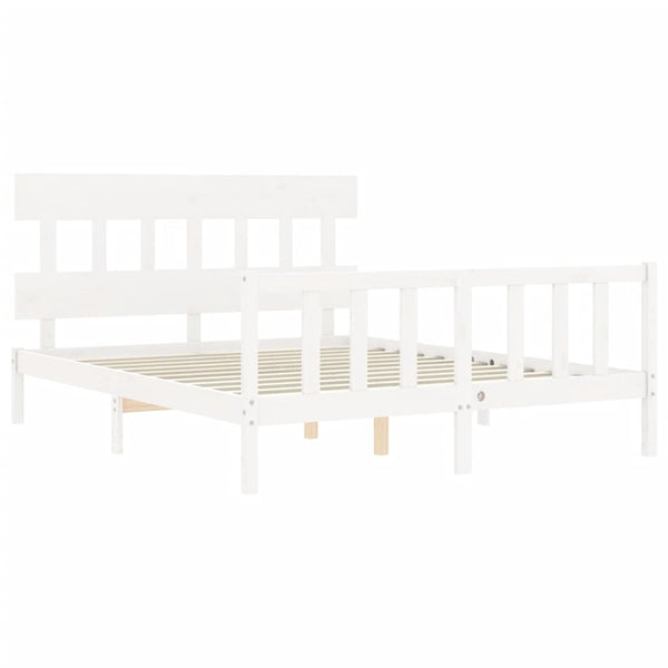 Valkoinen sängynrunko päädyllä 160x200cm mänty