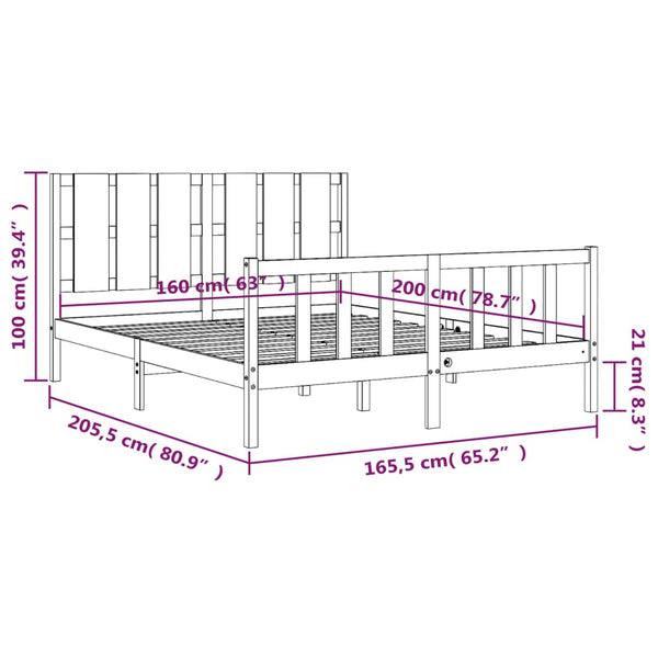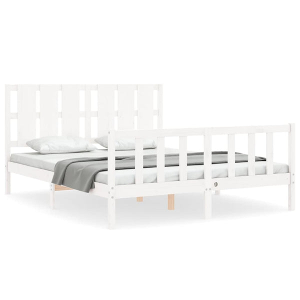 Valkoinen sängynrunko päädyllä 160x200cm mänty