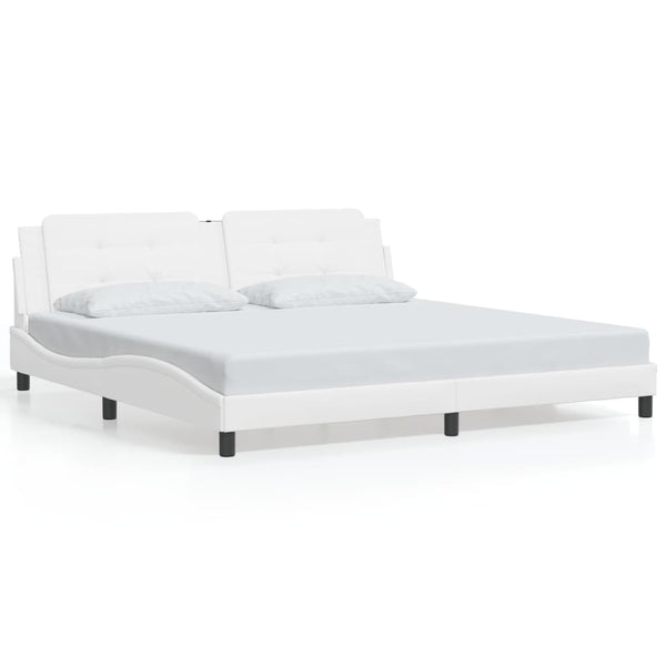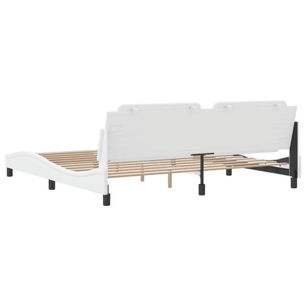 Valkoinen sängynrunko päädyllä 200x200cm keinonahka