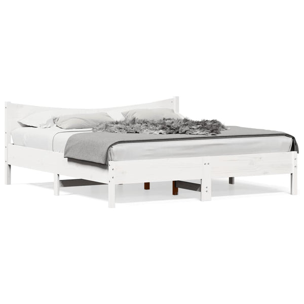 Valkoinen sängynrunko päädyllä 200x200cm mänty