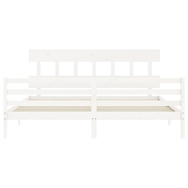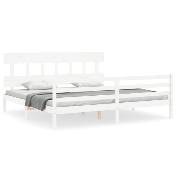 Valkoinen sängynrunko päädyllä 200x200cm puu