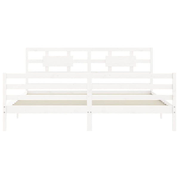 Valkoinen sängynrunko päädyllä 200x200cm puu