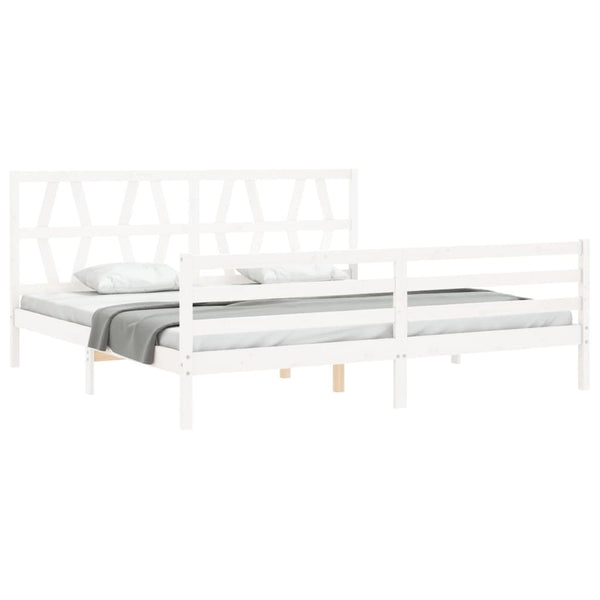 Valkoinen sängynrunko päädyllä 200x200cm puu