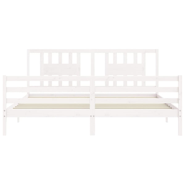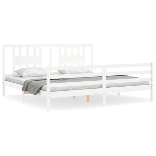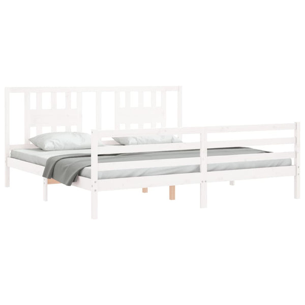 Valkoinen sängynrunko päädyllä 200x200cm puu