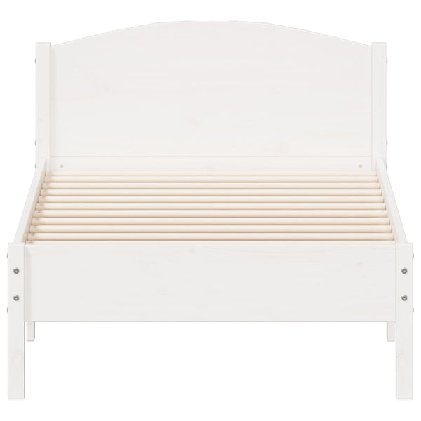 Valkoinen sängynrunko päädyllä 75x190cm mänty