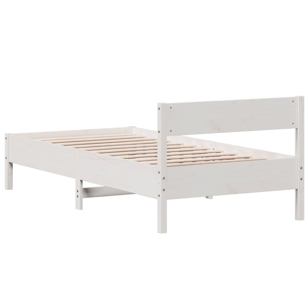 Valkoinen sängynrunko päädyllä 90x190cm mänty