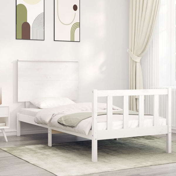 Valkoinen sängynrunko päädyllä 90x200cm puu