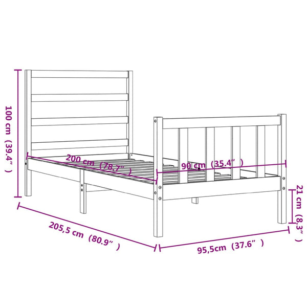 Valkoinen sängynrunko päädyllä 90x200cm puu